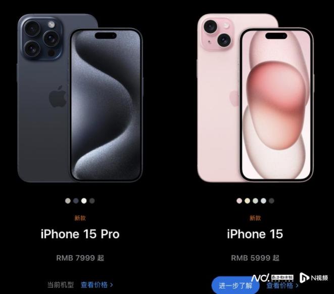 另外,iPhone15系列首次采用了整块融色玻璃,共有粉色、黄色、绿色、蓝色、黑色五种配色可选。性能方面,iPhone15搭载了4nm工艺A16仿生芯片,去年,这款芯片首次在iPhone14Pro上推出。